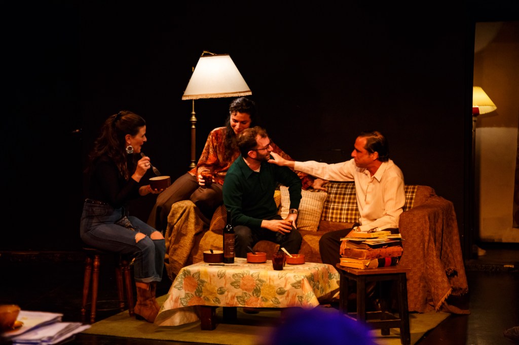 -Un poco lo que sucedió en la función del corte de luz, de tener cierta libertad y resolución ante los accidentes y los logros también. Porque a veces hay muchas cosas de la puesta de la obra que se lograron por la libertad que tenemos nosotros como actores de probar y jugar, de proponer y de escucharnos mientras estamos actuando. La verdad es que si tengo que rescatar algo es el nivel de propuesta hacia el material que le dimos todos desde el primer día. Llevamos y probamos cosas para que la cosa suceda, eso a Juli le servía un montón porque era un era un ida y vuelta. Es una libertad y un juego. Sé que hagamos lo que hagamos nadie va a salir lastimado y eso es clave. Hay mucho código. Por lo cual tengo que rescatar algo. Ese código que tenemos sin haber trabajado los cuatro antes. Eso me parece muy valioso y, para mí, también habla de la formación que tenemos los cuatro como actores y actrices.