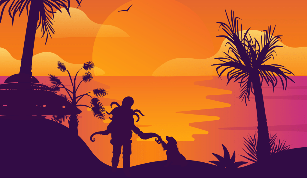 ¿Será este ser el causante de su huida? Baje a examinarlo con detenimiento, la criatura no huyo, se acercó y con un cuerpo viscoso que salió de su interior de color rojo y húmedo, me toco mi extremidad superior, a la vez de que se movía con fuerza y seguía repitiendo su única expresión de comunicación. ¡Según mis datos es una muestra de afecto! ¡Es interesante! Evidentemente es esta la forma de vida que domina estos parajes, la única que frente a una nueva presencia no huyo, sino que ahuyento a esos tenebrosos seres. – ¡Gracias! —le dije mientras lo cargaba con cuidado y lo subí a mi transporte.
