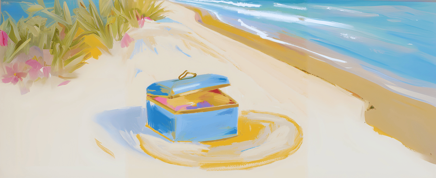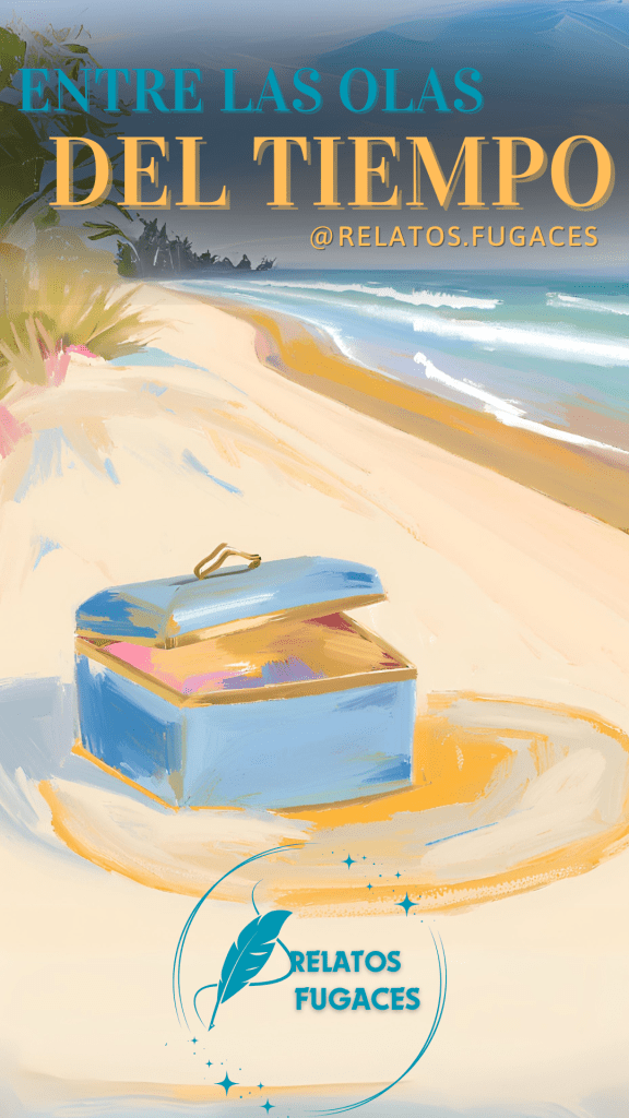 Sobresaliendo entre la inmensidad de la arena blanca, salía una caja vieja y oxidada color azul intenso, con detalles dorados, denotaba que había estado ahí hacia muchísimo tiempo. Ambos se abalanzaron sobre ella intrigados