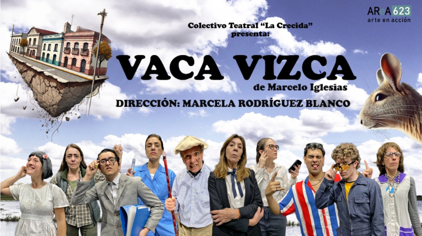 A veces, un pueblo puede ser una brújula que señala para todos lados a la vez. Vaca Vizca nace ahí, en un terreno donde la tierra tiembla, se abre y aun así la gente insiste en seguir viviendo. Desde la mirada del Colectivo La Crecida, con texto de Marcelo Iglesias y dirección de Marcela Rodríguez Blanco, la obra mezcla absurdo, humor y realismo mágico para preguntarse qué se quiebra y qué permanece cuando lo conocido deja de ser seguro.