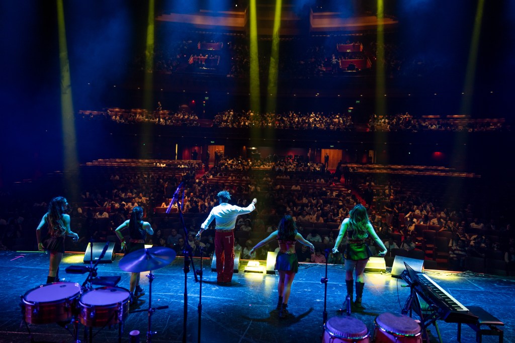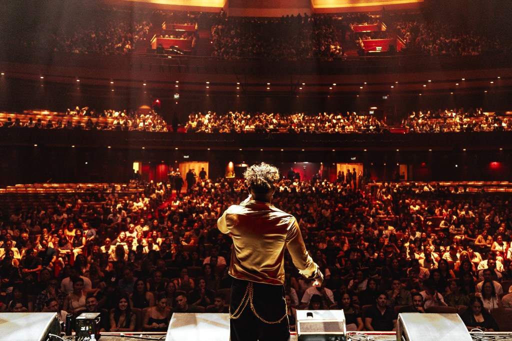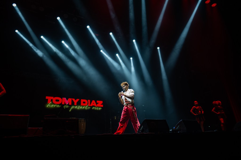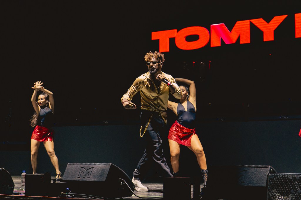 Pero si hay un lugar donde su propuesta termina de cobrar sentido, es en vivo. Tomy Díaz construye shows pensados como experiencia: coreografías, dinamismo y una conexión constante con el público. Acompañado por cuatro bailarinas, cada presentación se vuelve un cruce entre recital y espectáculo escénico.
