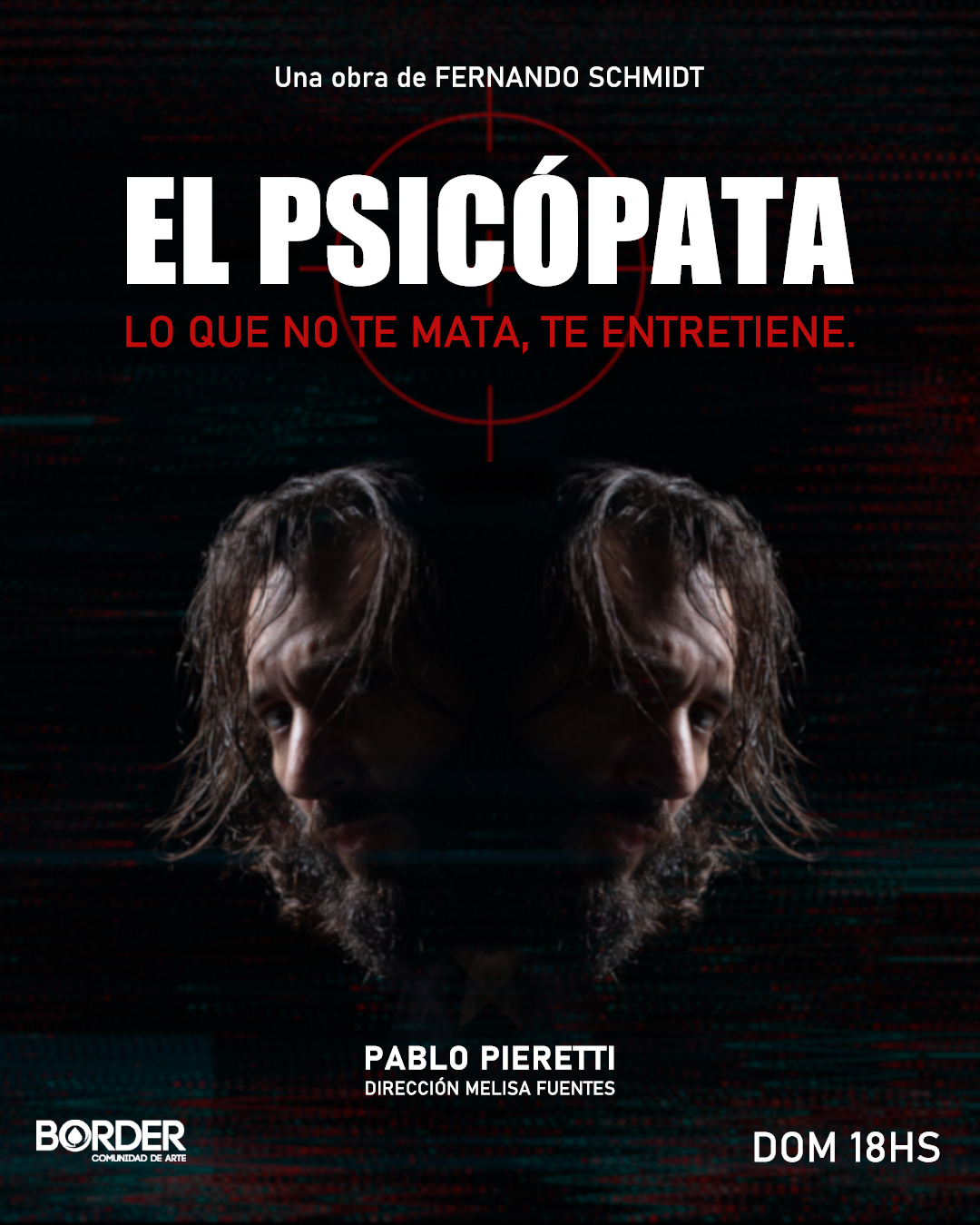 «El psicópata», con la actuación de Pablo Pieretti, dirección de Melisa Fuentes y dramaturgia de Fernado Schmidt, estará presentando su segunda temporada a partir de este domingo 6 de abril a las 18:00 hs en Teatro Border.