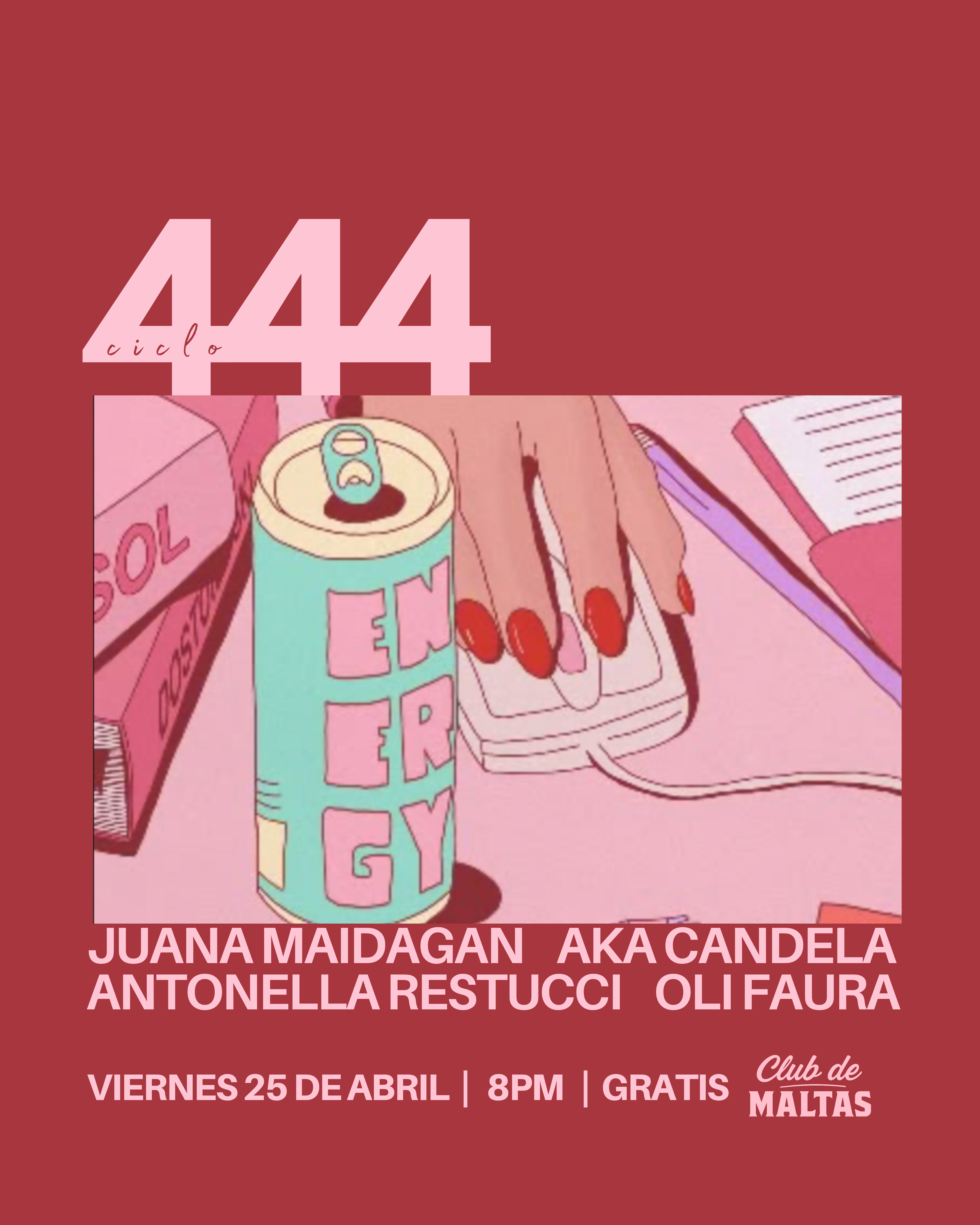 La cita es el viernes 25 de abril a las 10PM en Club de Maltas, con entrada libre y gratuita.