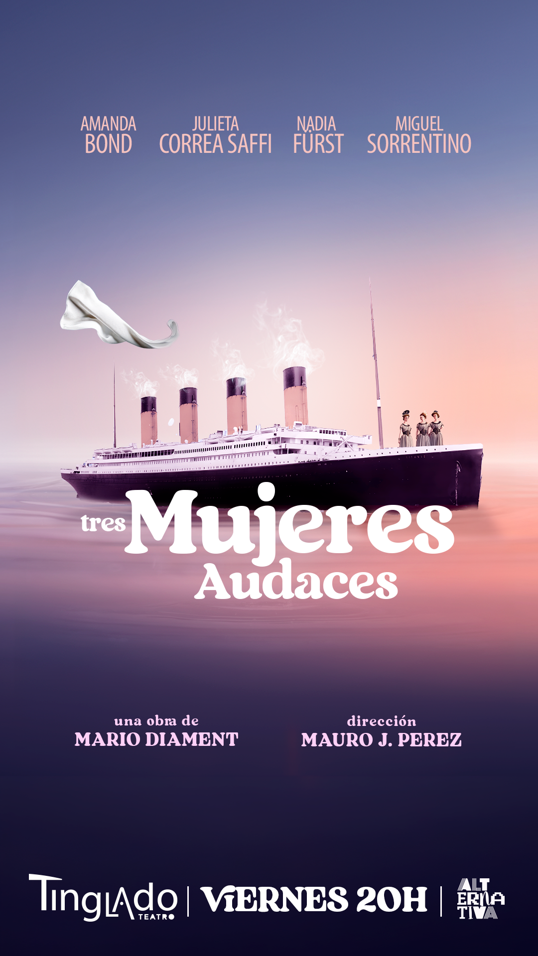 El elenco —Julieta Bastanza, Luna Berardi, Catalina Bologna, Matie Copani, Rocío Miguel, Belisario Olmedo, Leandro Origüela, Luciana Papa, Cecilia Redivo, Agnes Sigal, Agustina Silvestre y Amancay Vera— da vida a esta comunidad atravesada por el tiempo, sostenida por la música de Tadeo Macri y la complicidad de un equipo que hace del teatro un refugio.