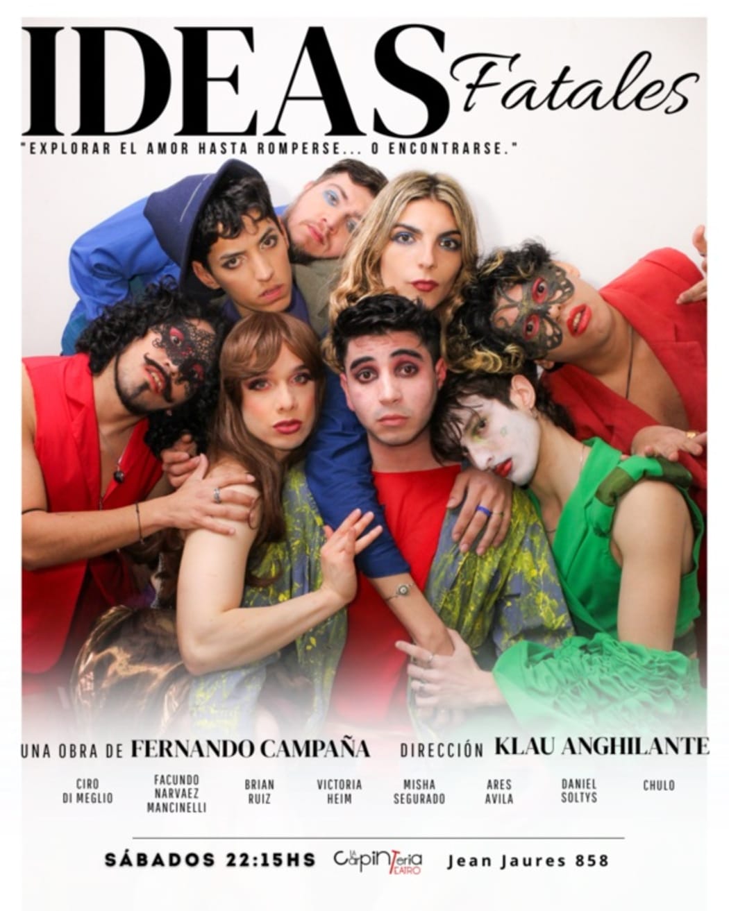 Dramaturgia:Marcelo Caballero, Martín Goldber / Libro:Marcelo Caballero, Martín Goldber / Actúan: Leila Assad, Camila Ballarini, Carolina Carniglia, Luciana Corti, Iru Cruz, Sabrina DI Costanzo, Godo Nicolás, Noelia Lee, Ignacio López Míguez, Emanuel Procaccini, Nicolás H. Quaglini, Matías Serrano, Sosa Frende / Dirección:Sol Rieznik Aguiar, Gonzalo Rivarola
